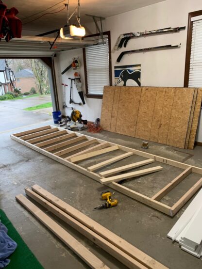 2×4 frame, 2×4 horizontal beams for support (typically 1.5′ – 2.5′ feet apart)